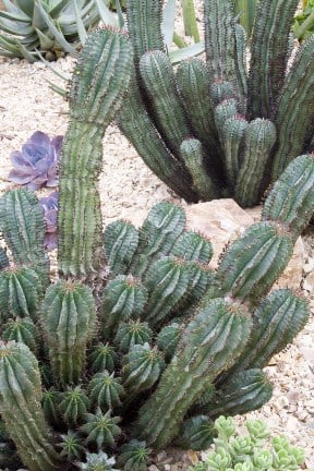 This cactus is growing very straight, flat and thin, with small parts starting to grow out.